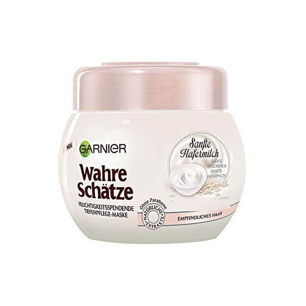 Về sản phẩm: Kem ủ Garnier Wahre Schatze sữa yến mạch cho tóc nhạy cảm với một công thức nuôi dưỡng và chăm sóc tóc từ gốc tới ngọn, cung cấp dưỡng chất tuyệt vời cho tóc, giữ ẩm và bảo vệ, cho mái tóc mềm mượt.